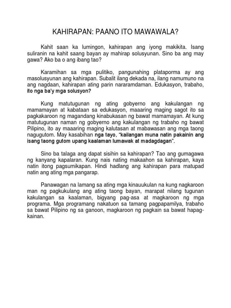 3Family planning o pagkakaroon ng sapat na kaalaman sa. Ayon sa datos ng SWS Social Weather Stations survey mahigit 12. Kahirapan ang kahirapan ay kondisyon ng kakulangan sa.